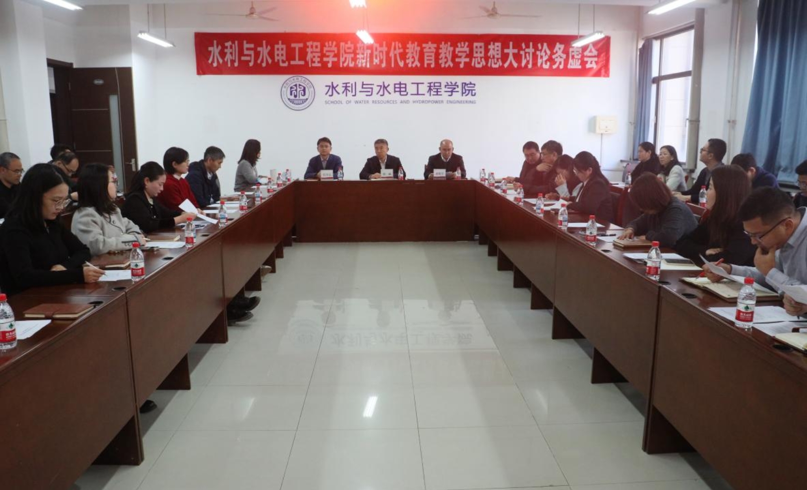 在交流讨论环节,与会教师围绕教育教学理念更新、课程体系优化、实践教学改革、AI赋能课堂等方面展开热烈讨论。大家积极建言献策,提出了加快增设“智慧水利”等新工科方向、筹划开设本硕博贯通班、开展“沉浸式”招生宣传等具有建设性的意见和建议。
